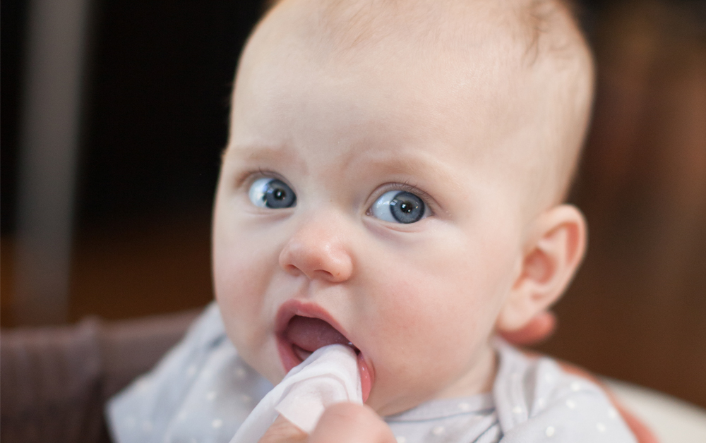 Předtím, než se objeví první zoubky, můžete ústa udržovat čisté pomocí sterilní navlhčené gázy nebo pomocí zubních ubrousků od Dr. Brown´s. Ubrousky nejen šetrně čistí dásně a ústa dítěte, ale pomáhají likvidovat škodlivé bakterie, které mohou vést k zubnímu kazu.