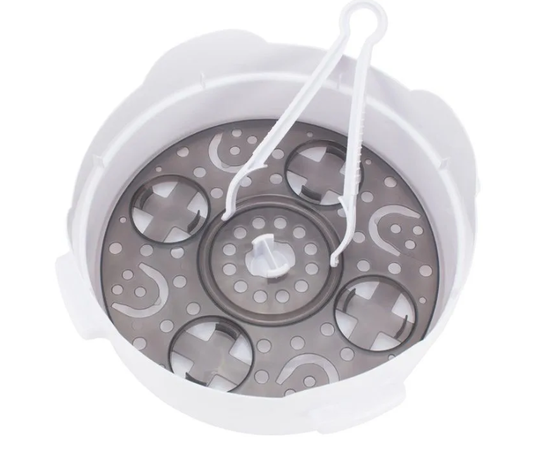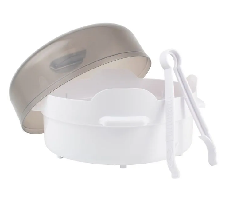 Parní sterilizátor značky Dr.Brown´s sterilizuje a dezinfikuje kojenecké láhve během pár minut. Je vyrobený až pro 4 láhve Dr.Brown´s včetně jejich součástí. Teplo páry během několika minut účinně zničí až 99.9 % bakterií a choroboplodných zárodků. Součástí balení jsou i kleště pro manipulaci s jež vyčištěními láhvemi.